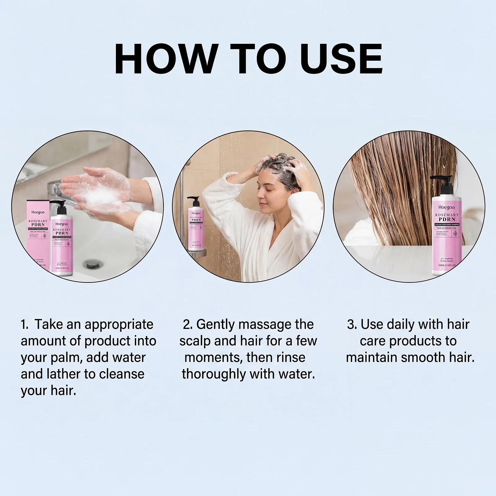 1.Coloque uma quantidade adequada de produto na palma da mão, adicione água e faça espuma para limpar o cabelo.2.Massageie suavemente o couro cabeludo e o cabelo por alguns instantes e depois enxágue abundantemente com água.3.Use diariamente com produtos para o cabelo para manter os cabelos macios.Condicionador para Couro Cabeludo